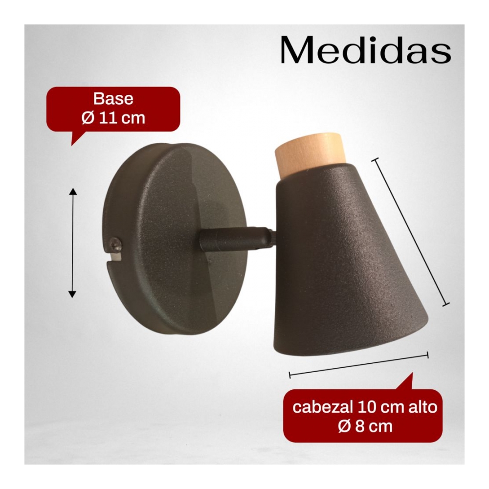 Descripción: Aplique de pared de 1 Luz con diseño nórdico que combina metal y madera natural. Ideal para destacar dormitorios, livings o pasillos con un estilo cálido y moderno. Incluye lámpara GU10 LED, ofreciendo una iluminación funcional y decorativa, perfecta para interiores contemporáneos.