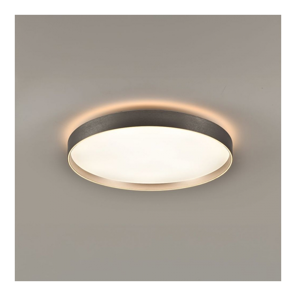 Descripción: Plafón decorativo de diseño circular con doble fuente de luz. El aro