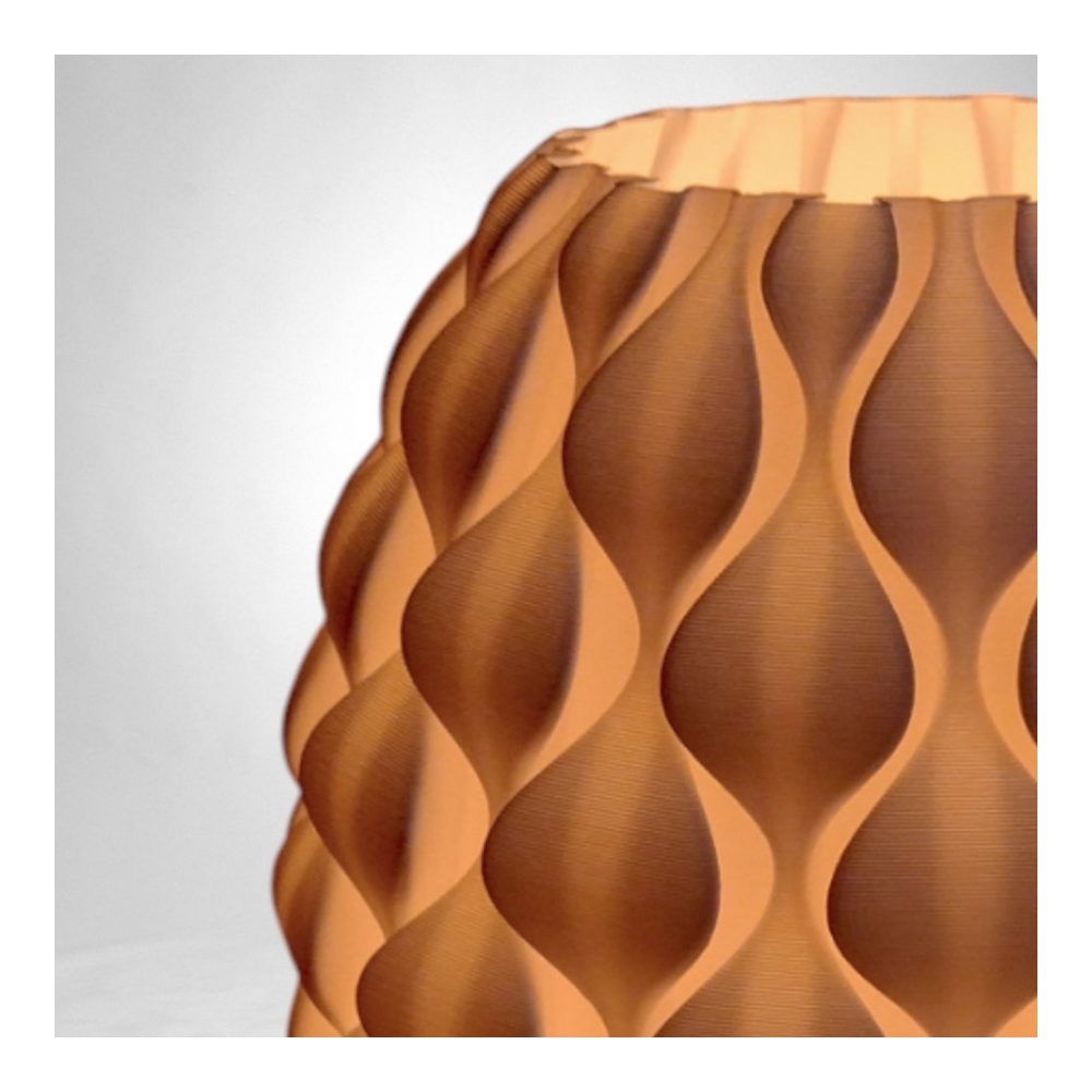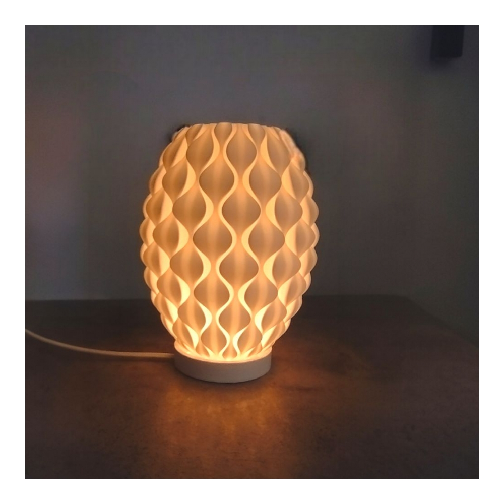 Velador fabricado en impresión 3D con PLA de alta calidad, liviano y resistente. Compatible con lámpara roscada E27, ideal para crear un ambiente cálido y moderno en tu hogar.