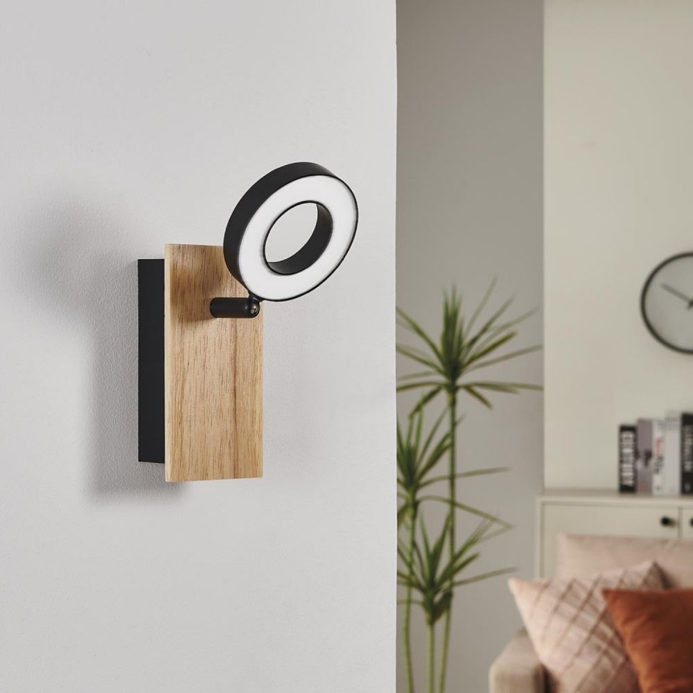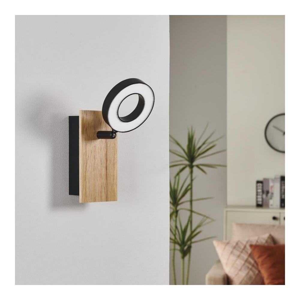 Descripción: Aplique decorativo negro con madera Rielves 4.2W — 500 lm / 3000K