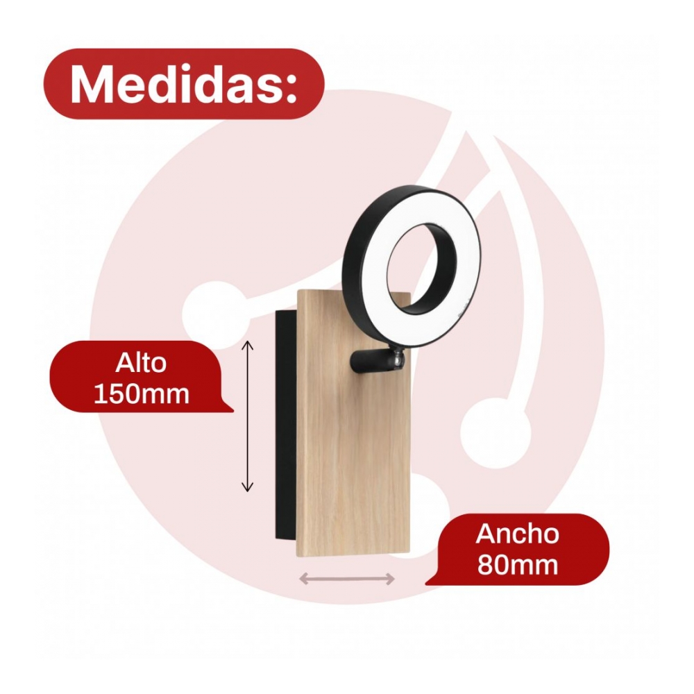 Este aplique combina un diseño cálido y moderno gracias a su estructura negra con detalles en madera, ideal para sumar estilo sin perder funcionalidad. Su luz LED cálida de 3000K ofrece una iluminación agradable y pareja, perfecta para cabeceras de cama, pasillos o espacios donde se busca buena claridad sin deslumbrar. Con 500 lúmenes y un CRI 80, garantiza una reproducción de color natural y un consumo energético muy bajo.