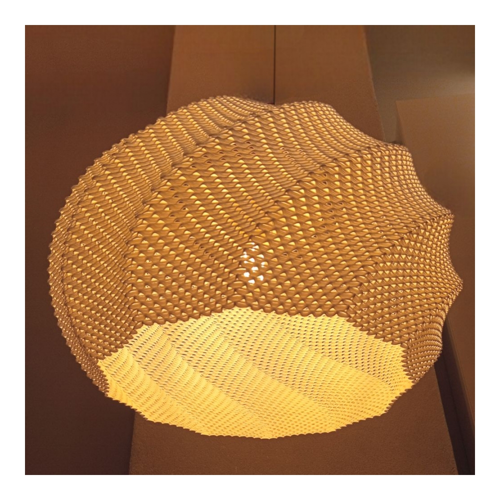 El Yantra es un colgante fabricado en impresión 3D con un diseño moderno de estilo nórdico, combinado con elegantes detalles en madera. Está preparado para lámpara LED E27 y construido con materiales de muy buena calidad. Su cuerpo translúcido deja pasar la luz de forma pareja y suave, generando un efecto soft ideal para ambientar espacios con calidez y estilo.