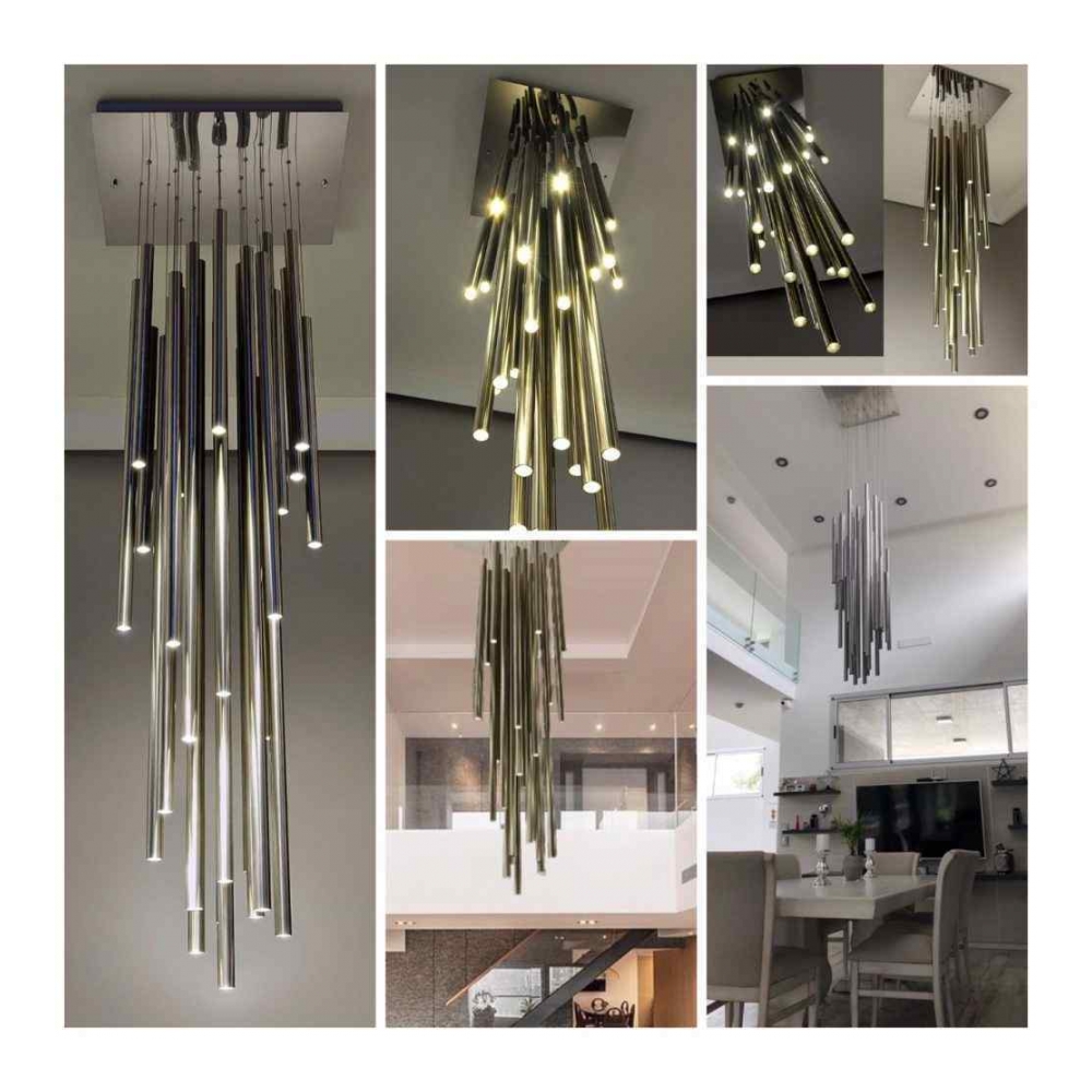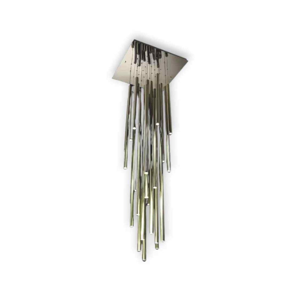 Descripción: Colgante asimétrico con colgantes tubulares de led integrado.