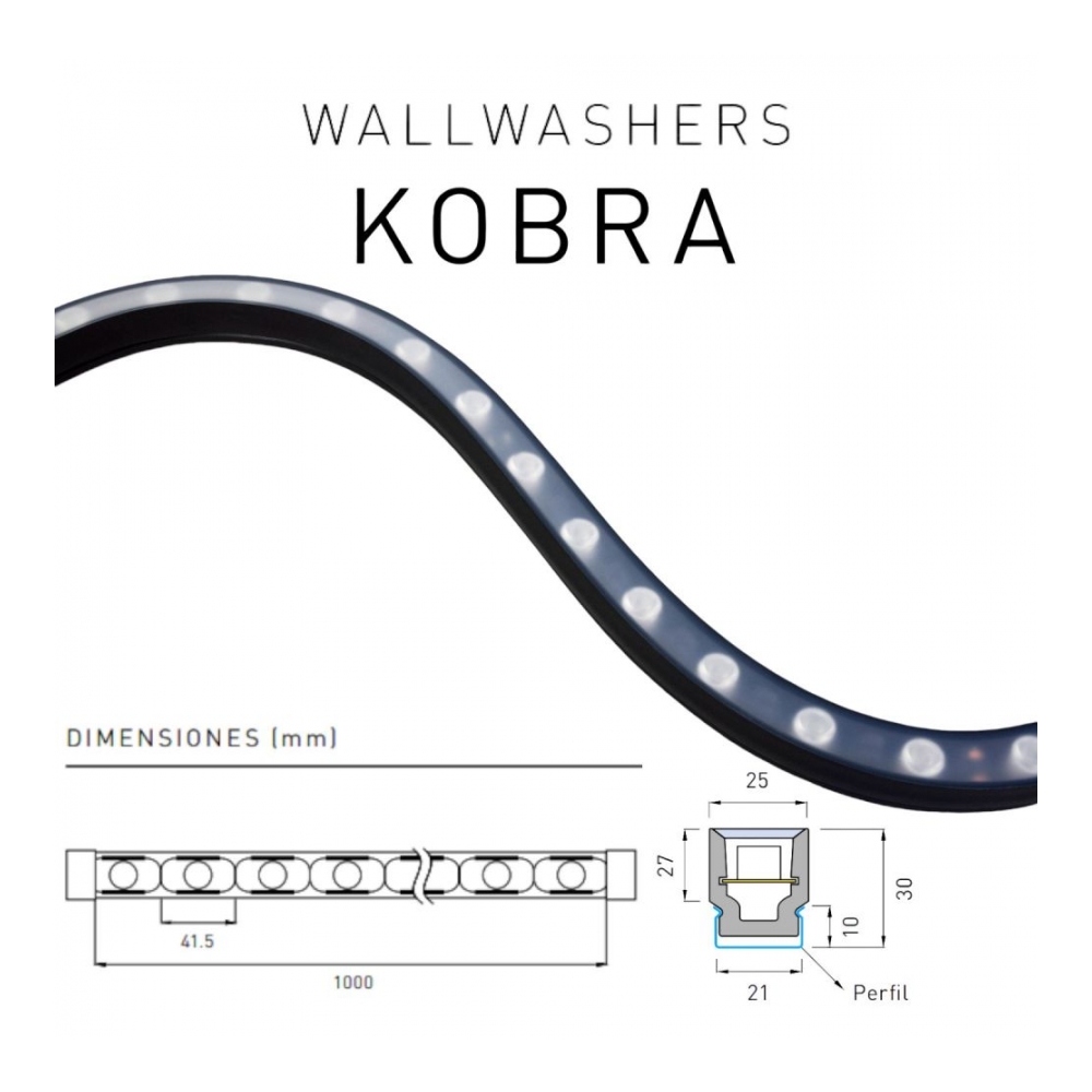 Descripción: El Kobra, de la reconocida marca World Leds Go, es un innovador bañador flexible diseñado especialmente para arquitectos que buscan soluciones luminosas que se integren a la perfección con la arquitectura contemporánea. Con su capacidad de **side y top bending**, el Kobra se adapta a las formas curvas y dinámicas de cualquier estructura, ofreciendo una iluminación que realza la estética del espacio.