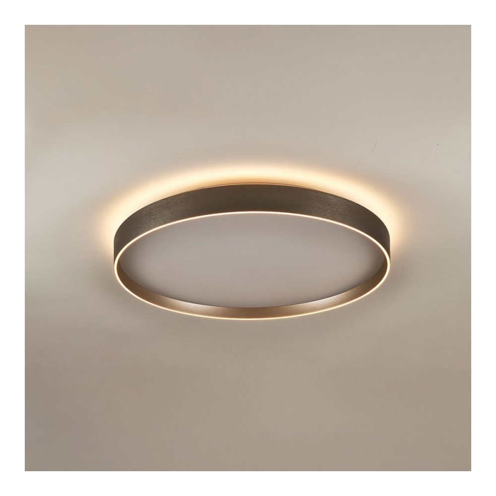 Descripción: Plafón decorativo de diseño circular con doble fuente de luz. El aro