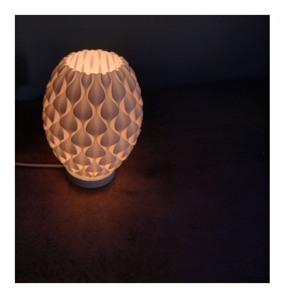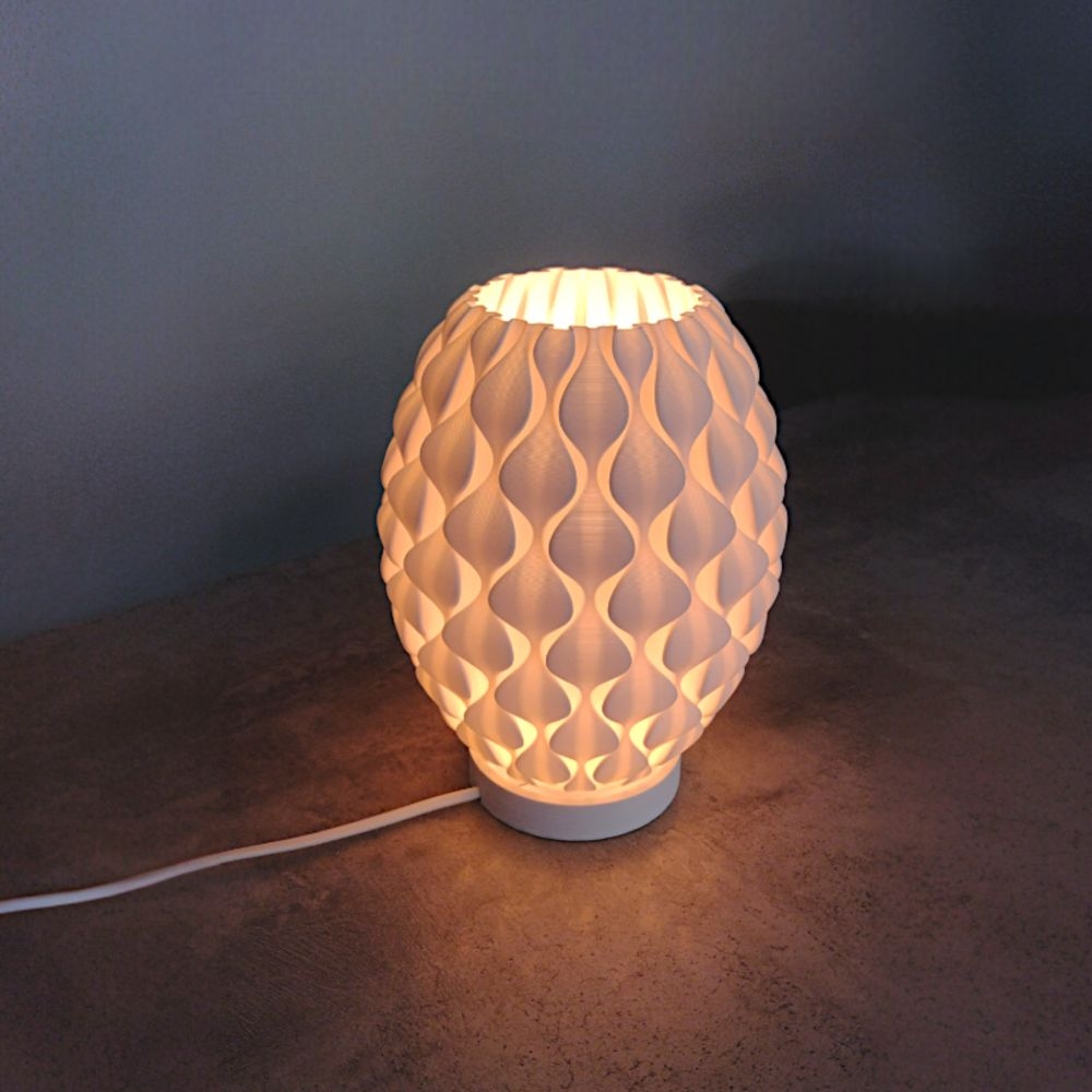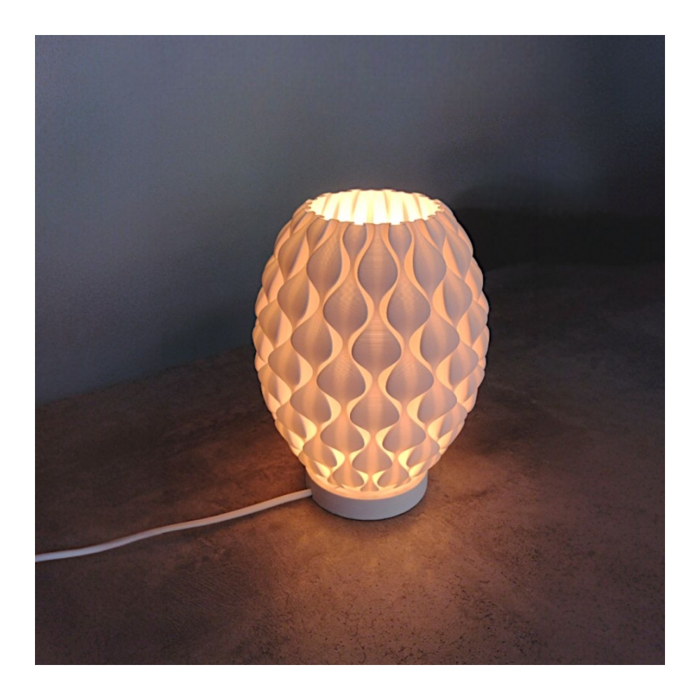 Velador fabricado en impresión 3D con PLA de alta calidad, liviano y resistente. Compatible con lámpara roscada E27, ideal para crear un ambiente cálido y moderno en tu hogar.