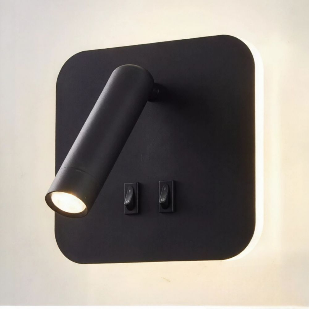 Descripción: El aplique LED combina elegancia y funcionalidad. Su diseño incluye una luz perimetral indirecta que crea un ambiente acogedor, mientras que el cabezal con luz directa proporciona una iluminación focal. Además, los botones independientes permiten un control sencillo y personalizado.