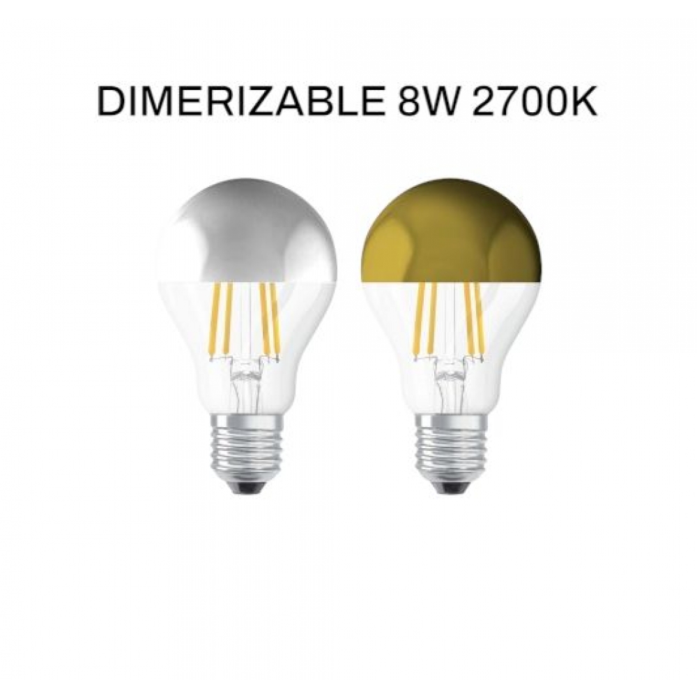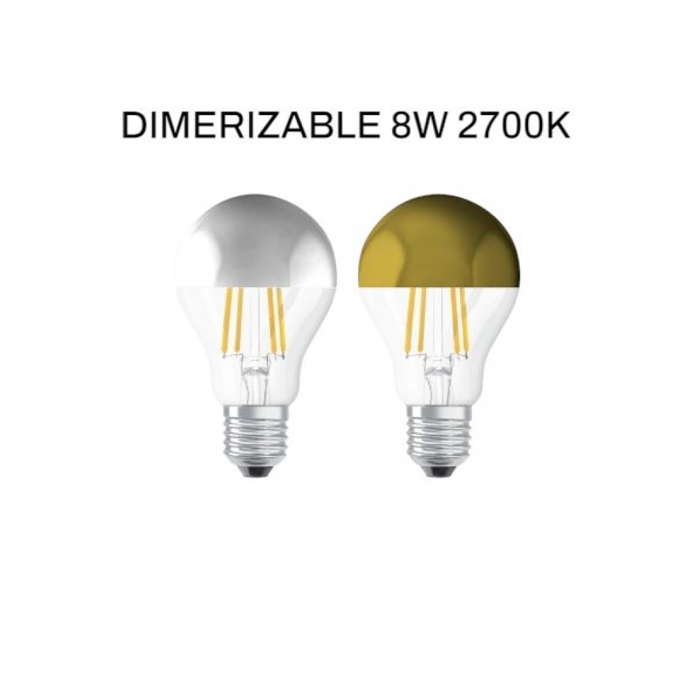 Lampara filamento Led calida dimmerizable de 8w con reflector inverso. Calida 2700K