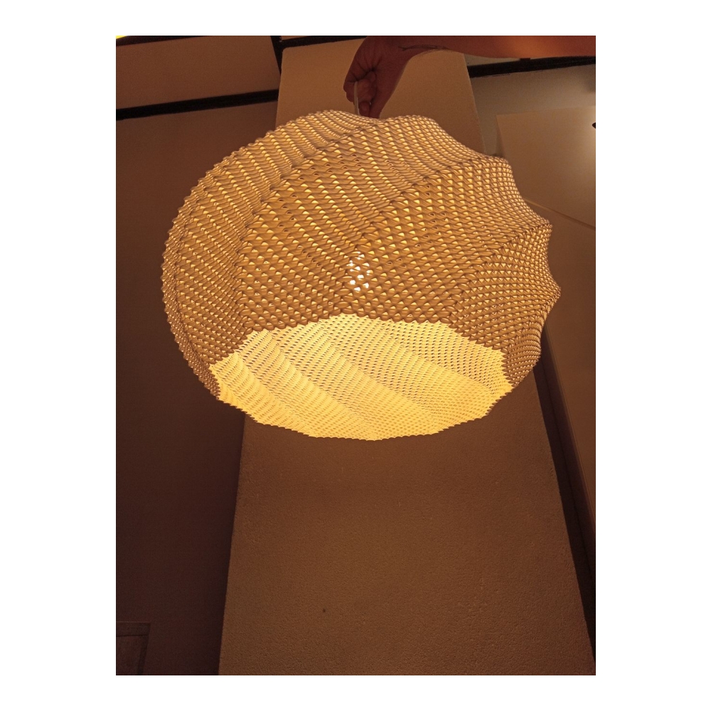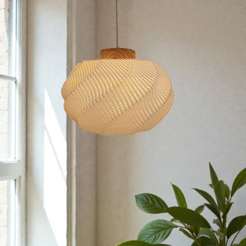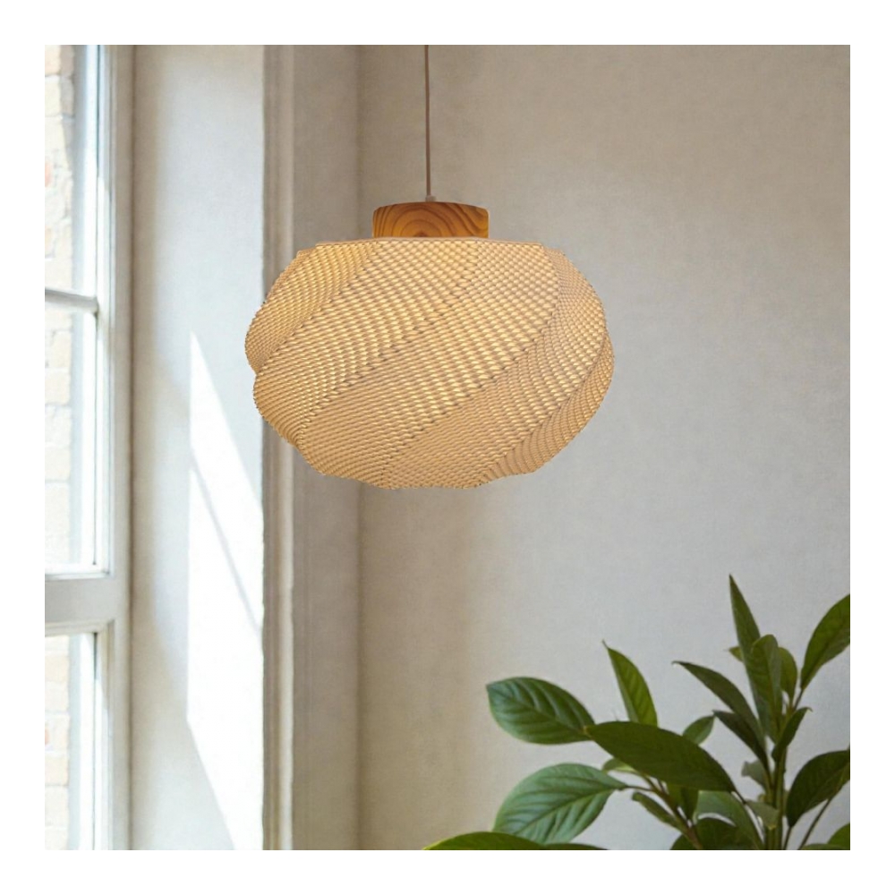 El Yantra es un colgante fabricado en impresión 3D con un diseño moderno de estilo nórdico, combinado con elegantes detalles en madera. Está preparado para lámpara LED E27 y construido con materiales de muy buena calidad. Su cuerpo translúcido deja pasar la luz de forma pareja y suave, generando un efecto soft ideal para ambientar espacios con calidez y estilo.